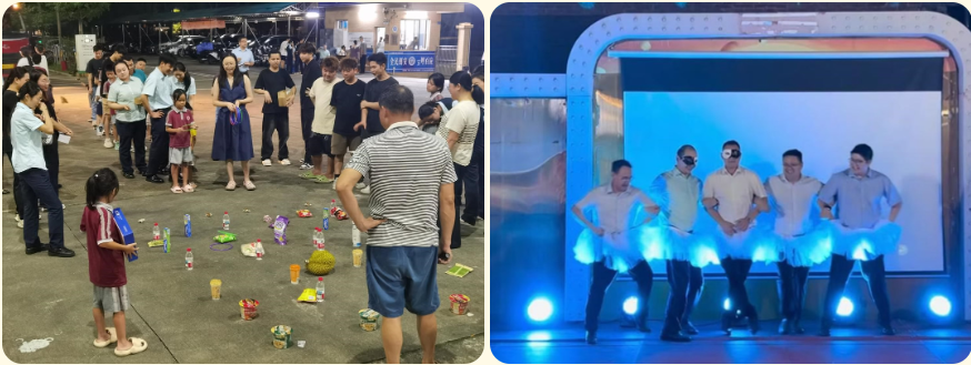 鳳崗分會(huì)以“喜迎中秋 歡慶國(guó)慶 郵你更團(tuán)圓”為主題辦游園晚會(huì),設(shè)美食體驗(yàn)區(qū)提供水果、燒烤等,員工暢聊歡笑;游戲環(huán)節(jié)有“九九乘法加速度”“幸運(yùn)滾滾樂(lè)”等,“歡樂(lè)套圈圈”的榴蓮大獎(jiǎng)將氣氛推向高潮。橫瀝分會(huì)在678藝時(shí)代廣場(chǎng)辦中秋晚會(huì)暨員工生日會(huì),猜燈謎、班組節(jié)目表演精彩紛呈,最后為下半年生日員工慶生,滿是溫暖。
